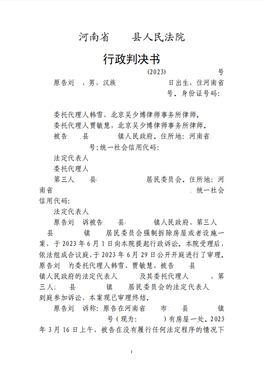本案代理律師 北京吳少博律師事務(wù)所 賈敏慧 韓雪 前言: 自建房可以強拆嗎?在我國存在的自